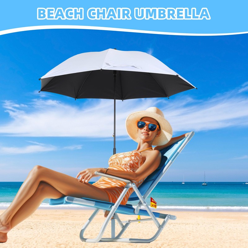 Hosuly 4 Pcs 46" Chair Umbrella with Universal Adjustable Clamp Sun Protection Beach Chair Umbrella Portable Outdoor Umbrella for Camping Chair Patio Golf Carts, Not Include Chair(Silver Gray)