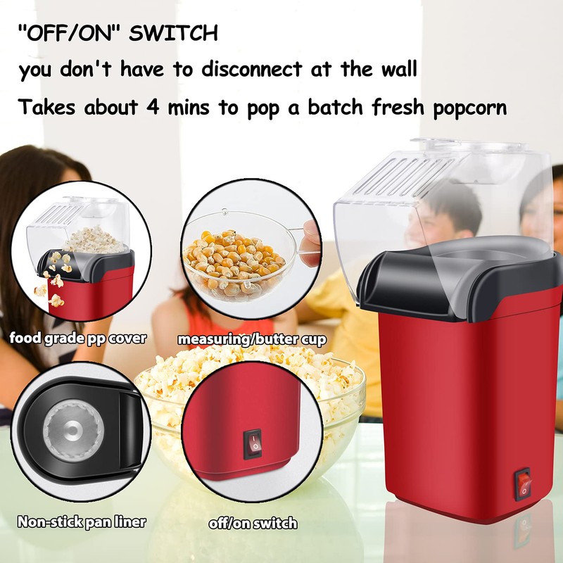 Hot Air Popcorn Popper, Electric Pop Corn Maker, Healthy and Quick Snack, No Oil Needed, with Measuring Cup
