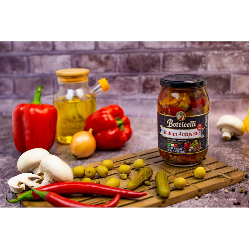 **ELEVATE YOUR MEALS INTO A WHOLE NEW CULINARY EXPERIENCE!** Give your family and friends an appetizing starter to increase their hunger for your main dish with Botticelli's Italian Antipasto! Made with fresh and finest sweet pepper, artichokes, olives, mushroom, onions and capers and mix in sunflower and olive oil, this will surely transform your antipasto recipes into an Italian masterpiece!