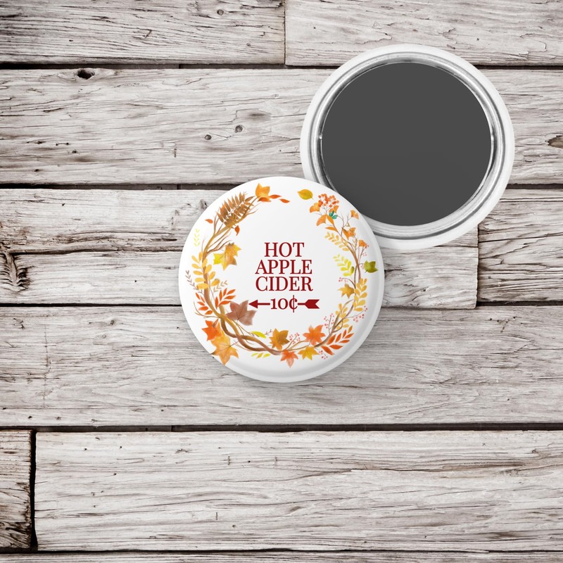 Hot Apple Cider Pin Button, Apple Pin, Fall Pin, Autumn Pin, Hot Apple Cider Keychain, Fall Keychain, Apple Keychain, Hot Apple Cider Magnet, Apple Magnet, Autumn Magnet (25 Pins - 1.50in)
