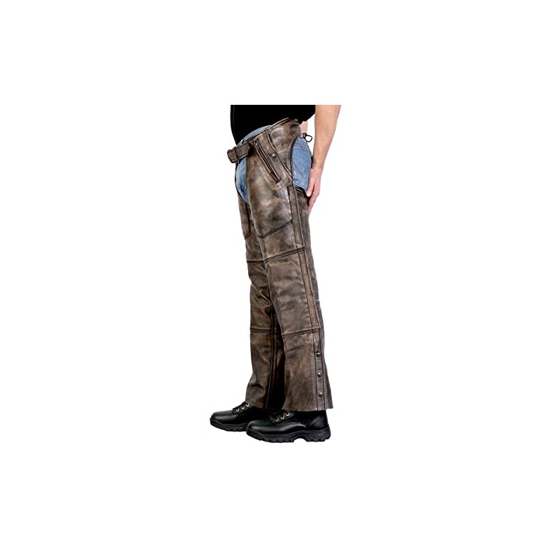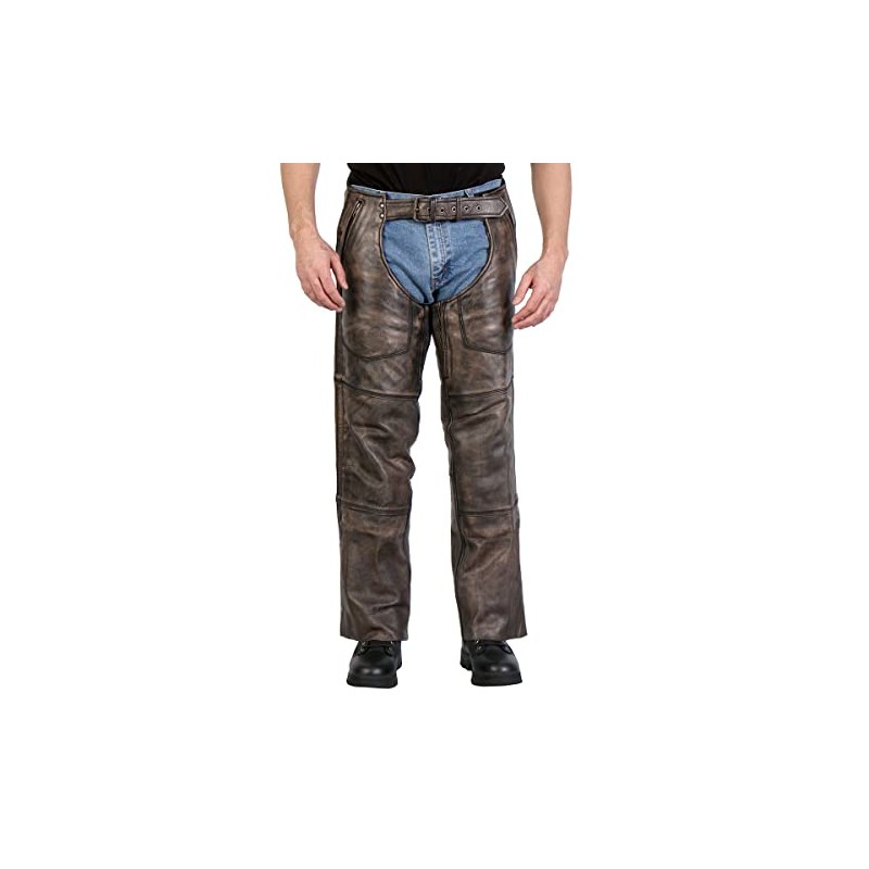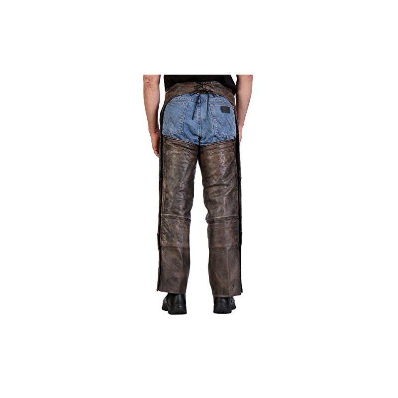 Hot Leathers CHM1008 Unisex Distressed Brown Premium Motorcycle Leather Chaps - X-Large