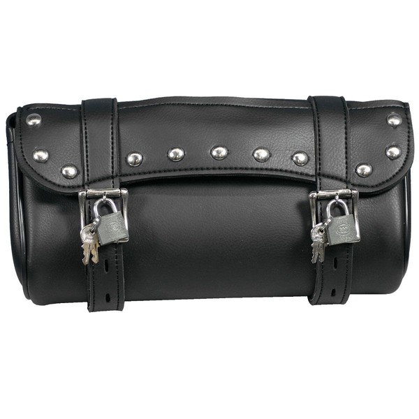 Motorcycle Tool Bag - Large PVC tool bag with studs. Padlocked buckles and Self Fastener Closure.