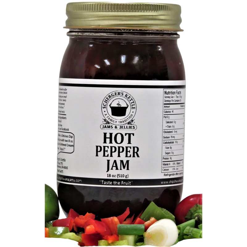 - Sugar, Red Bell Peppers, Green Bell Peppers, Jalapenos, Vinegar, Pectin.