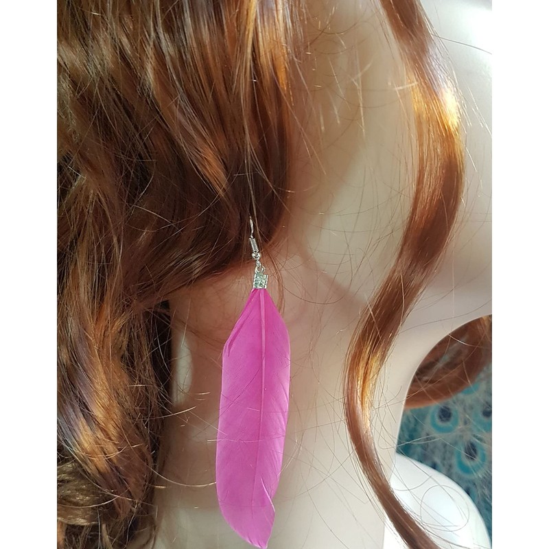 - Our hand crafted feather earrings have been made with a hot pink goose feathers