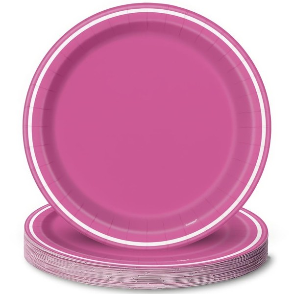 - PACKAGE INCLUDES: 8 Hot Pink Thin Stripes Round Dinner Plates - 9"