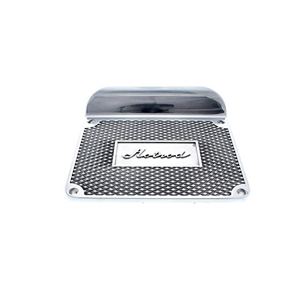 - Polished aluminum diamond style step plate with 'Hot Rod' script