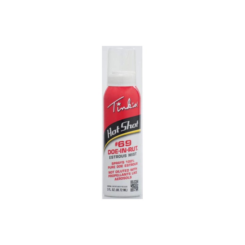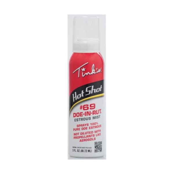 Tinks Hot Shot, 3 OZ, #69 Doe-In-Rut Buck Lure Mist, An Innovative Method Of Scent Dispersal That Shoots Out A Super Fine Mist To Allow For Maximum Scent Dispersion, With Hang Tag.