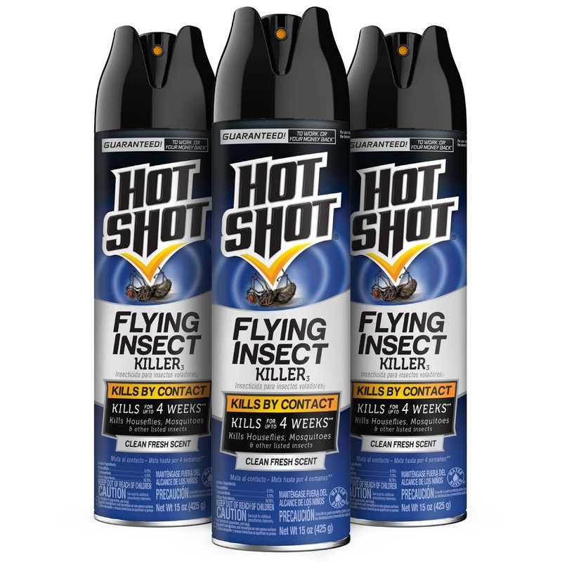 Hot Shot Flying Insect Killer, 15 Ounces, Aerosol Formula Kills Houseflies, Mosquitoes and Other Listed Flying Insects by Contact Indoors and Outdoors with Clean Fresh Scent, 3 Pack