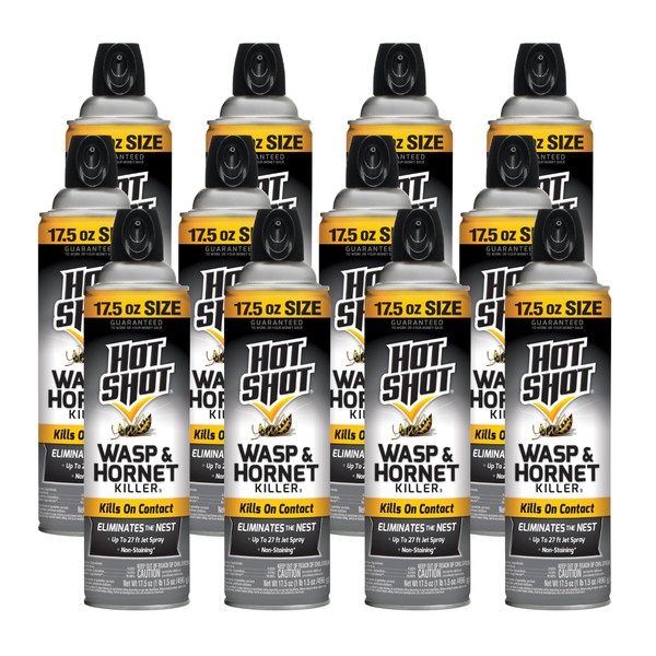 Hot Shot Wasp And Hornet Killer 17.5 Ounces, Bonus Size, Up to 27-Foot Jet Spray, 12 Pack, Black