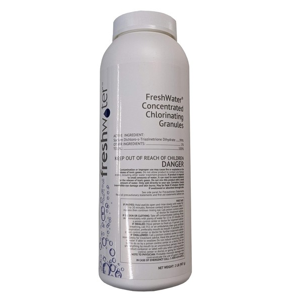 - Freshwater concentrated chlorinating granules in a 2lb bottle.