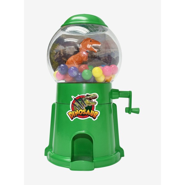 Step back in time for some Jurassic fun with this dinosaur gumball machine! Twist the crank to unleash colorful gumballs while the T-rex keeps watch.Sugar, dextrose, corn syrup, gum base, tapioca dextrin, titanium dioxide, confectioner’s glaze, carnauba wax, corn starch, artificial flavors, artificial colors (fd&c red 40, blue 1, yellow 5, yellow 6, red 3) and bht (to maintain freshness).Imported