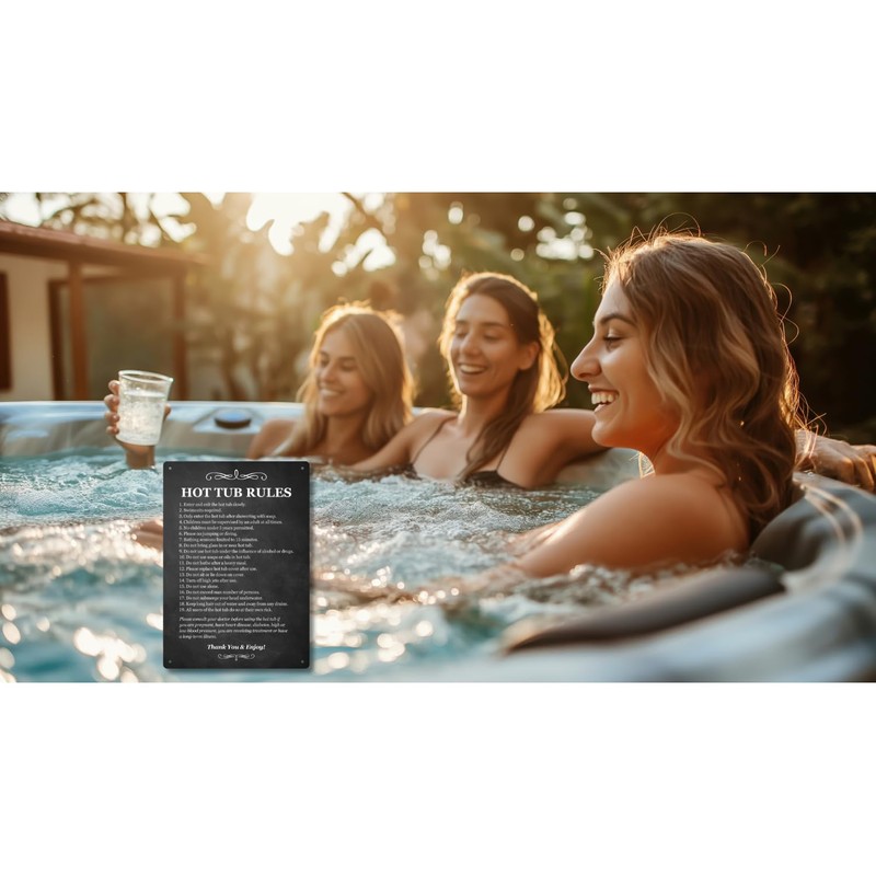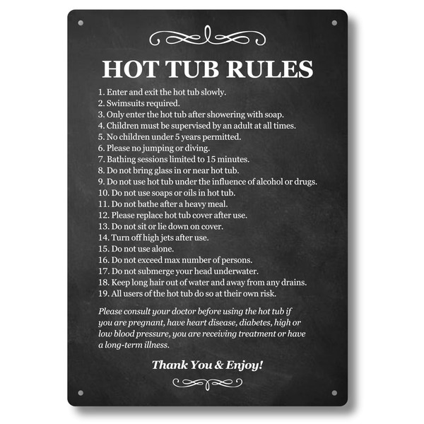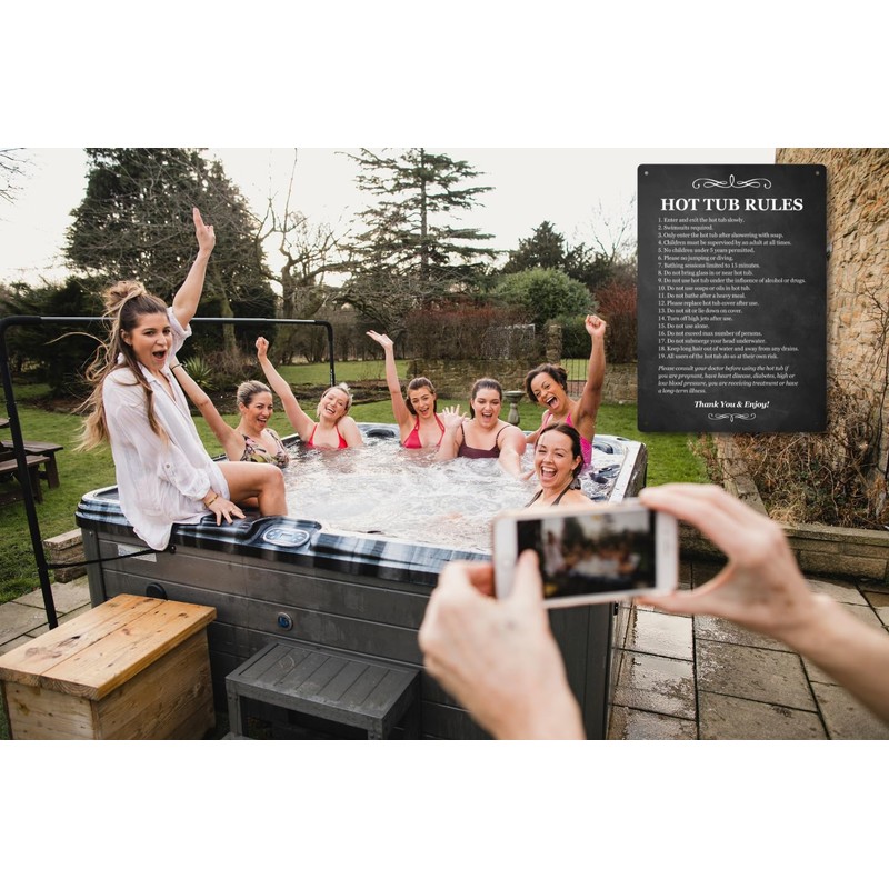 Hot Tub Rules - Black & White/Blue & White Sign for outdoor use with a list of health and safety points about using a hot tub. ideal for use in holiday accommodation (Black)