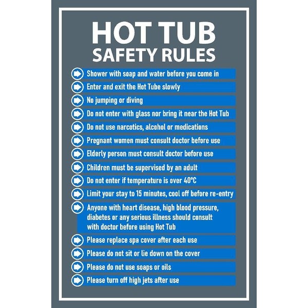 Hot tub safety rules, safety sign - 1mm flexible Plastic sign (300mm x 200mm)
