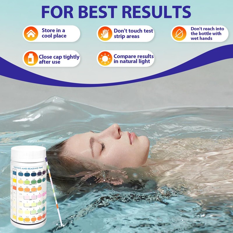 - [QUICK & ACCURATE RESULTS] Get reliable results in seconds! Simply dip the hot tub test strips into the water for 2 seconds, shake off any excess, wait 15-30 seconds, and compare the results to the color chart included for precise readings.