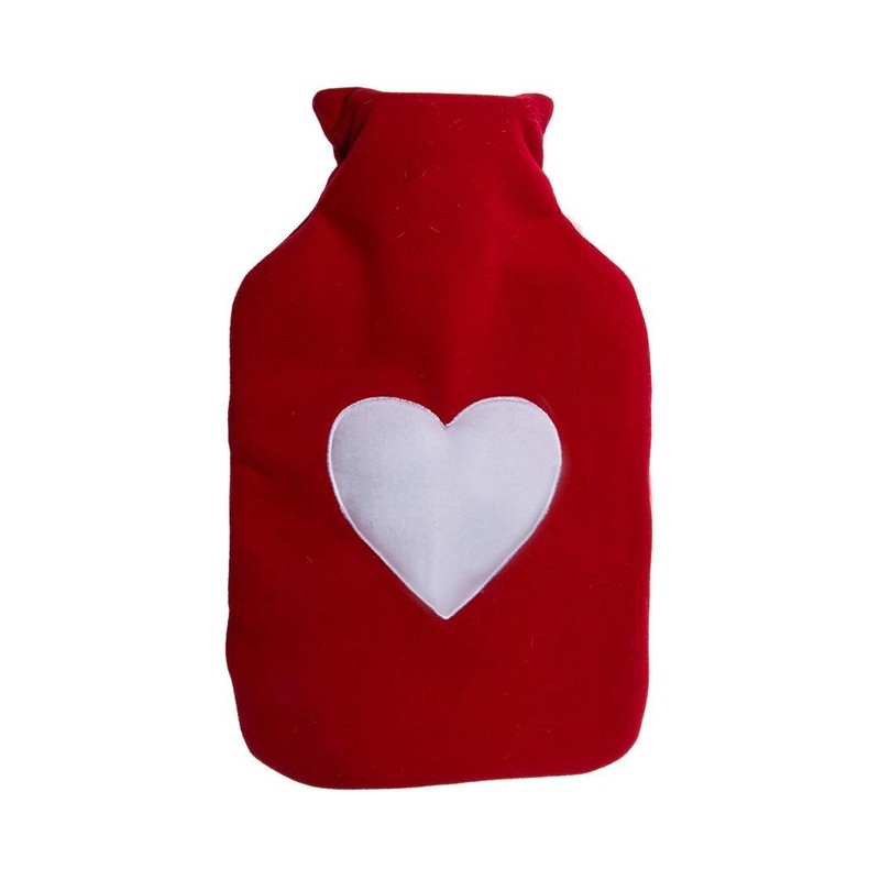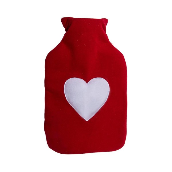 Hot Water Bottle with Heart, 100% Polyester Cover, approx. 32 x 20 cm for 2 Liter Capacity 10/5157