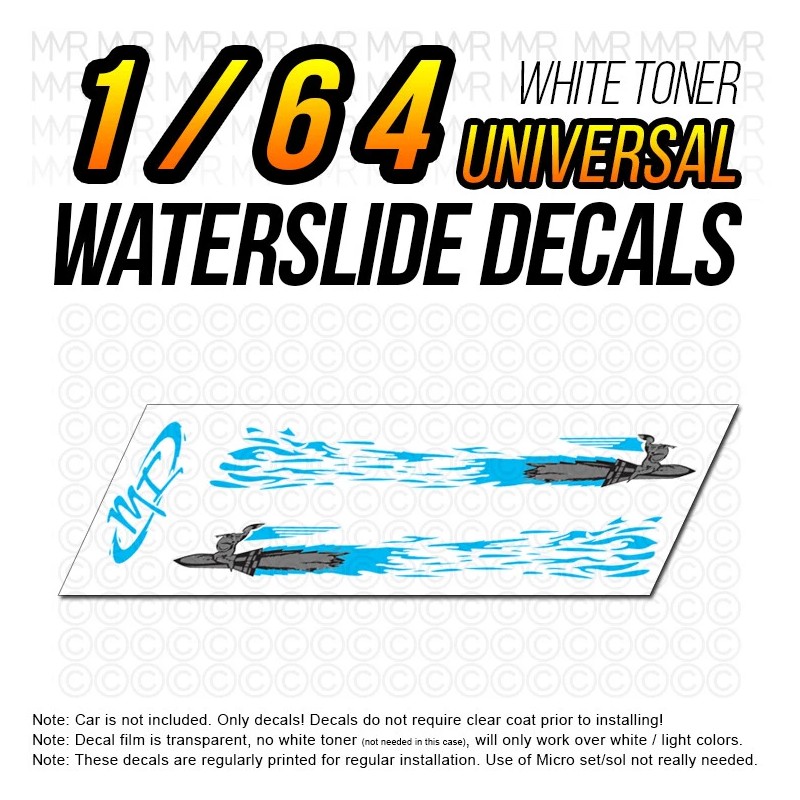 These universal waterslide decals have white toner layer underneath color so they work over any color on any car!