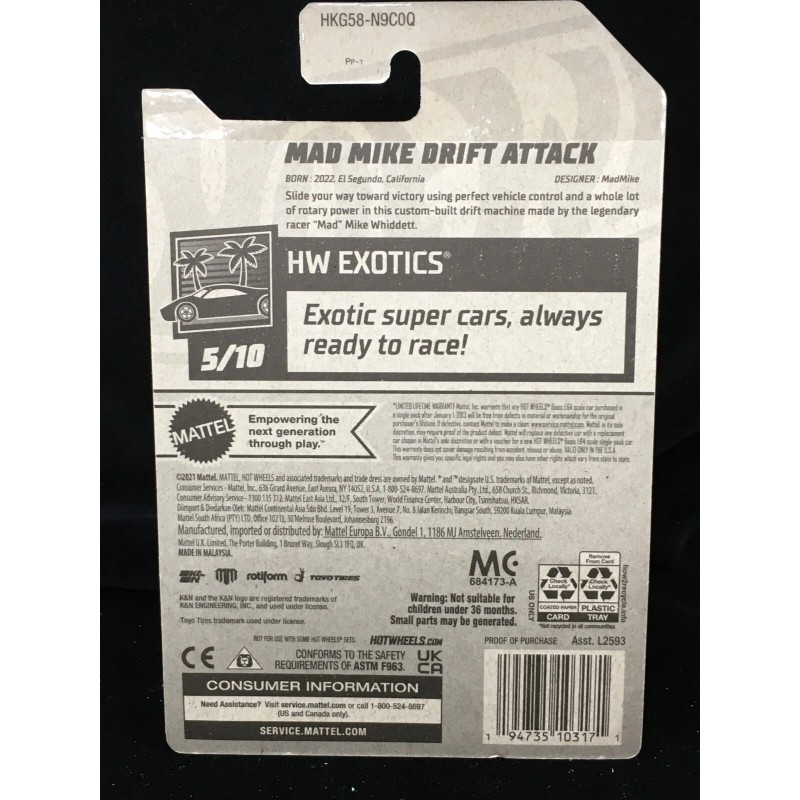 2023 Hot Wheels HW EXOTICS Mad Mike Drift Attack White #209 Q Case 1st Edition
