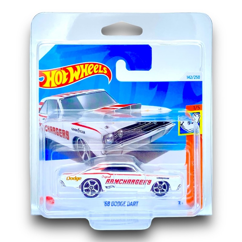 Hot Wheels '69 Dodge Dart (White & Red (Ramchargers)) 1/5 Muscle Mania - 2024-142/250 (Short Card) - COMES IN A GENUINE KLAS CAR KEEPER PROTECTOR CASE - HTC57