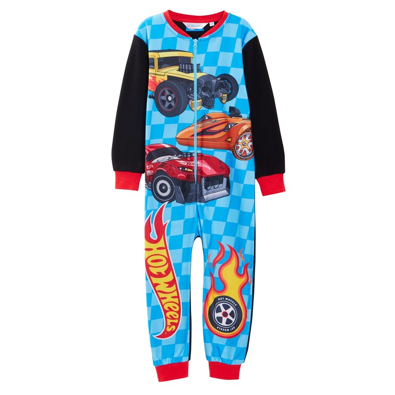 - Racing driver onesie : Hot Wheels fleece onesie made in collab with the Hot Wheeels designers. Featuring a high definition super cool image of Hot Wheels cars in action. All on a racing flag print featuring the official Hot Wheels logo. This onesie is great as loungewear and an alternative for a robe for all those active racing car fans. Super cosy and warm - perfect for snuggling up. A great gift for all Hot Wheels fans, especially when matched with our Hot Wheels slippers