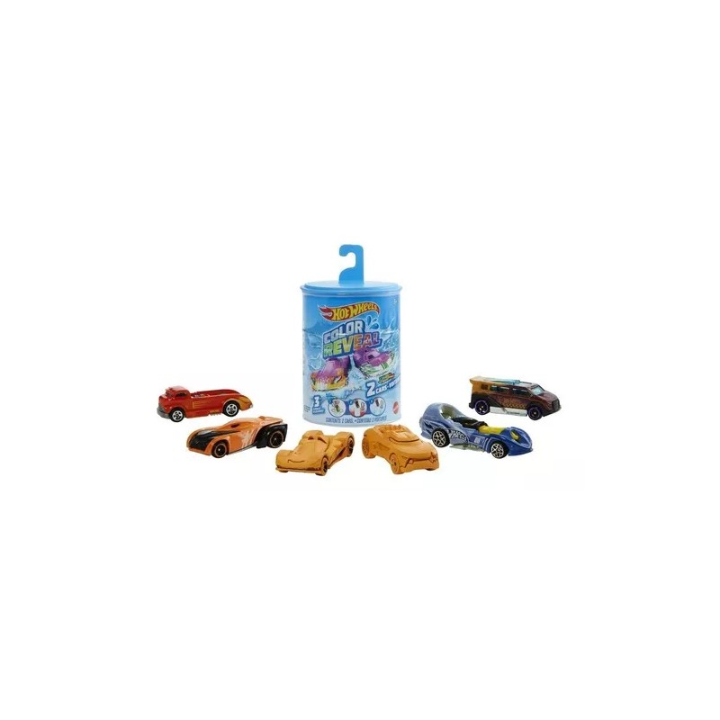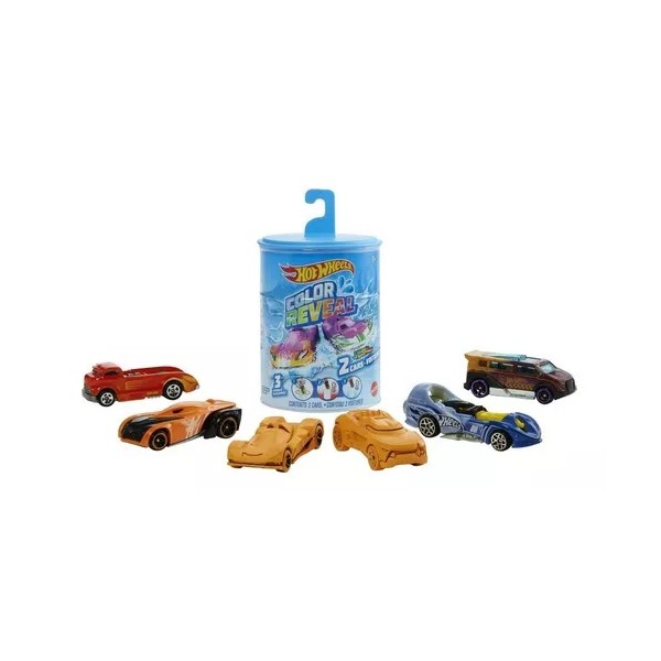 -El paquete Color Reveal™ de Hot Wheels® viene con 2 vehículos Color Reveal™ de Hot Wheels® a escala 1:64 en un tambor, cada uno con 2 diseños sorpresa esperando ser descubiertos.