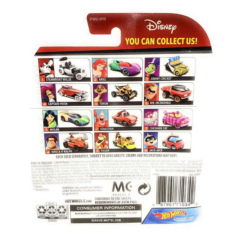 - This 2020 Assortment inluding the follow character cars: Mulan, Sebastian, Cheshire cat, Wreck-it Ralph,Tigger an Jack-Jack (each sold separately)
