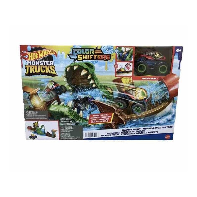 Introducing the Hot Wheels Monster Trucks Color Shifters Swamp Chomp! This amazing toy vehicle is perfect for children aged 4 and up who love playing with diecast toys. The brand Hot Wheels is known for producing high-quality toys with incredible attention to detail, and this product is no exception. With a scale of 1:64, the Swamp Chomp is a great addition to any toy car collection.