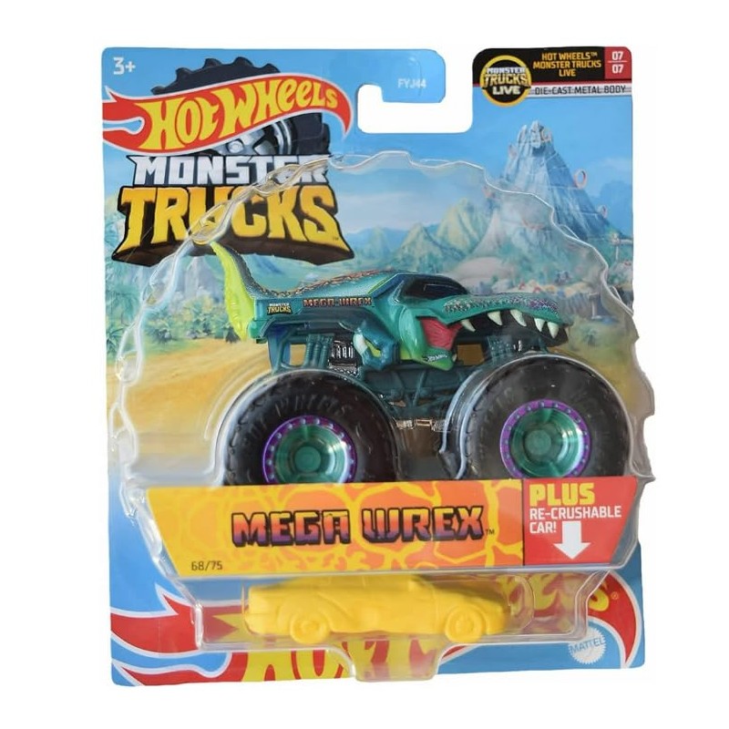 Hot Wheels Monster Trucks Mega Wrex, Re-Crushable 68/75 (Teal)