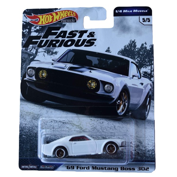 - Hot Wheels 1/4 Mile Muscle '69 Mustang Boss 302 5/5, blanco [rápido y furioso]