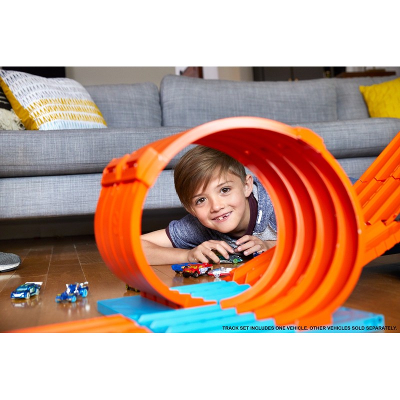 - Totally reconfigurable with 2 Hot Wheels die-cast cars