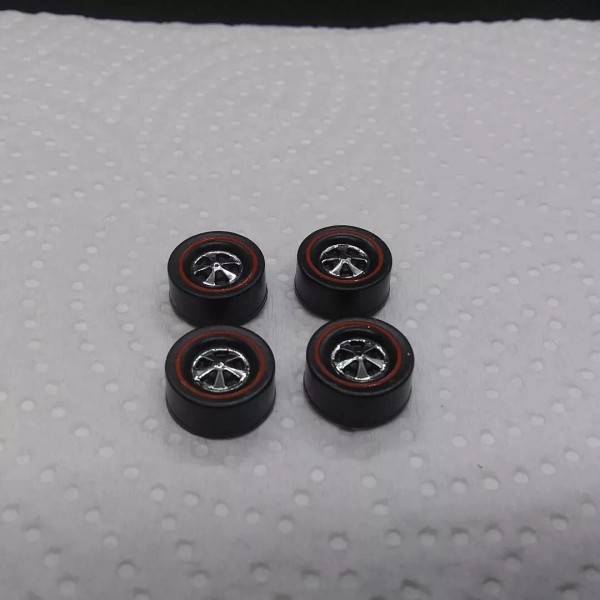 Hot Wheels Redline 4 HK Large Deep Dish Repro Bearing Wheels - Bright Chrome