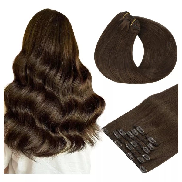 Clip de banana hotbanana en extensiones de cabello, marrón oscuro de 120 g de 120 g clip en extensiones de cabello para el cabello humano real, el cabello, las extensiones de cabello de 14 pulgadas 7pcs