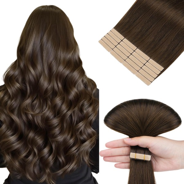 hotbanana Tape in Extensions Echthaar, 40cm Tape Extensions Echthaar 16 Zoll 20 Stück 50g Schokoladenbraun Echthaar Extensions Tape Gerade Remy Echthaar Tape Extensions