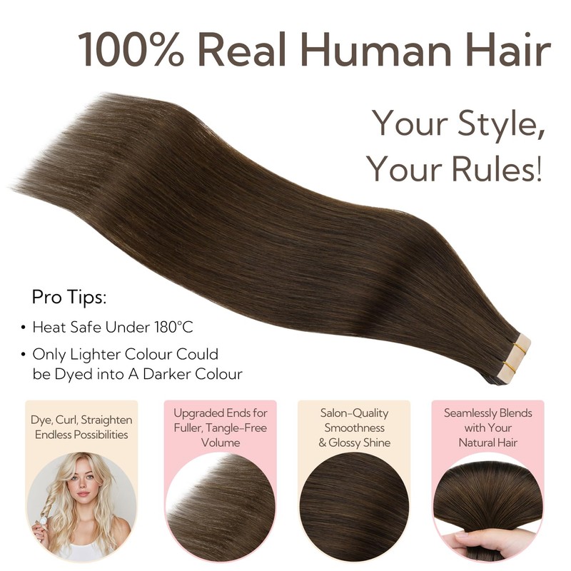 Das tape extensions ist so weich wie Ihr eigenes Echthaar und passt perfekt zu Ihrer Haarfarbe.