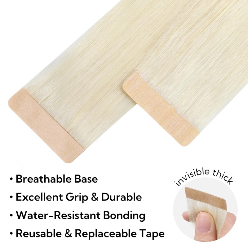 - Strudy & Replaceable Tape Base: HOTBANANA tape hair extensions use high-quality adhesive tape, more durable, not easy to fall off. Place tape hair between upper and lower of your hair strands, heat for seconds. Also can place new tape base for further use