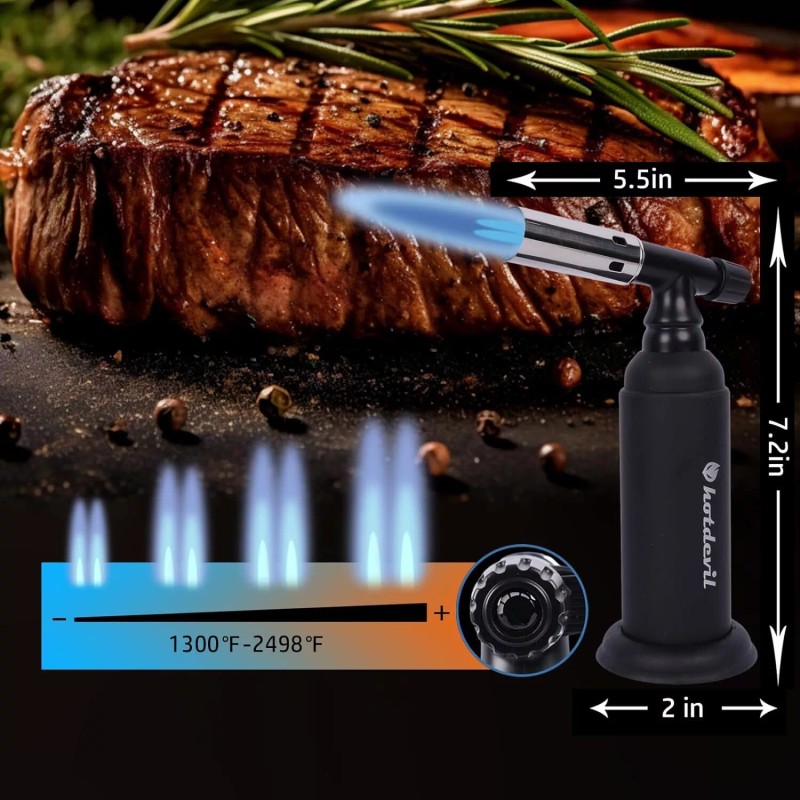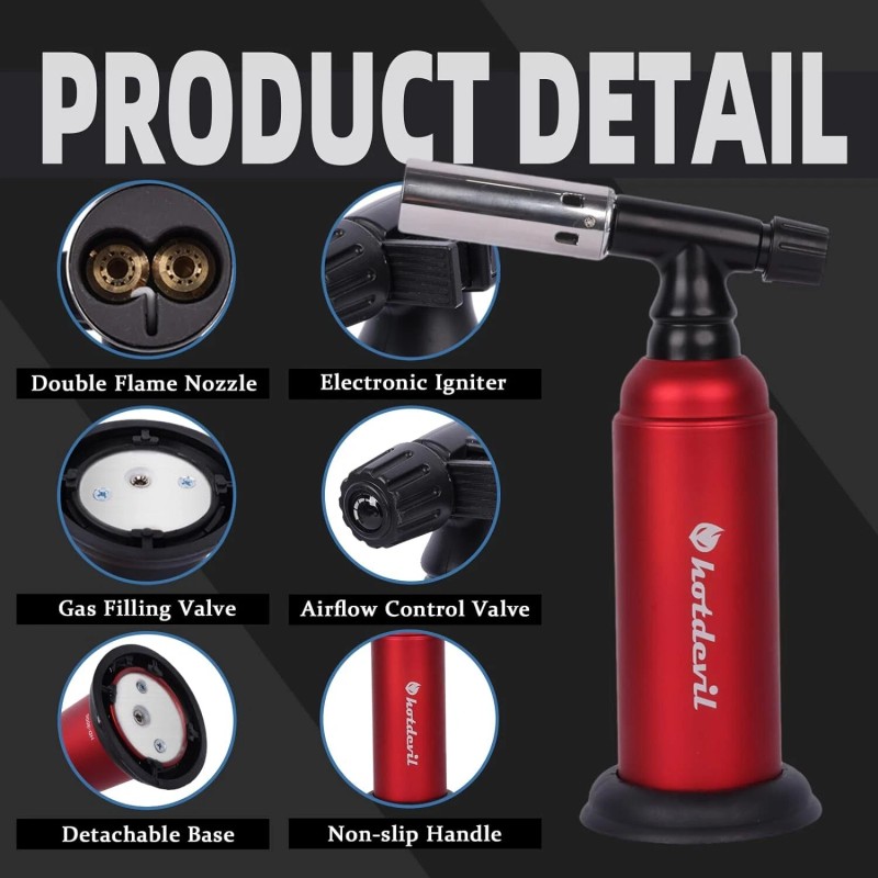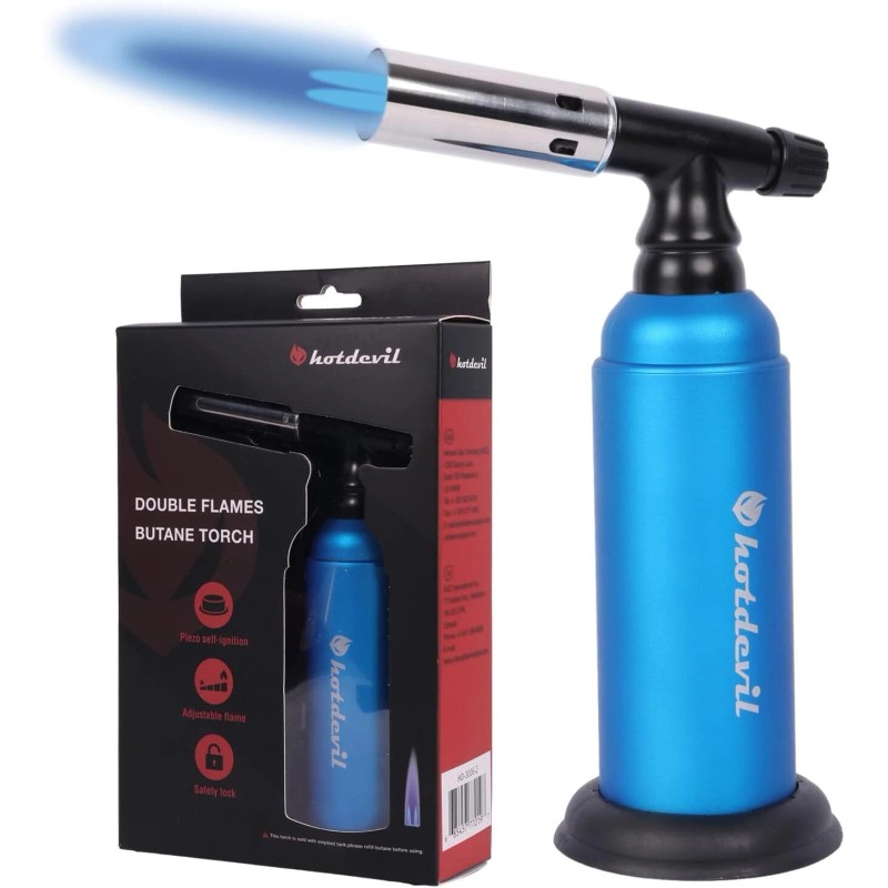 Hotdevil 20g Refillable Butane Torch Industrial Torch Adjustable Double Flame - Black