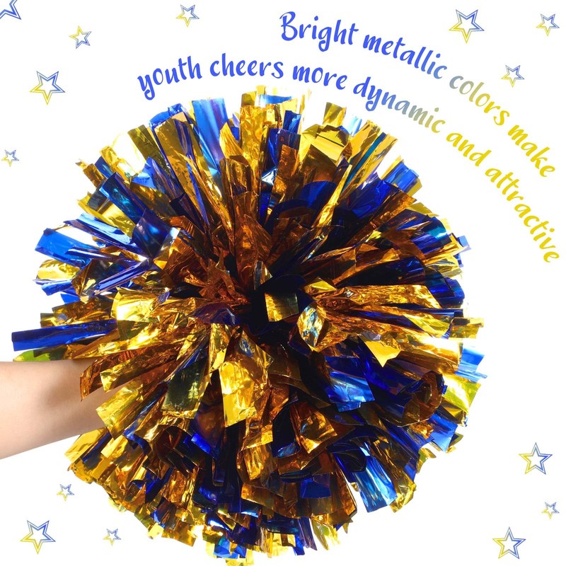 - Quality Material: the cheer leader pom poms adopt metallic foil and hard plastic handle, stable and reliable, won't fade easily, convenient to be held, will serve you for a long time
