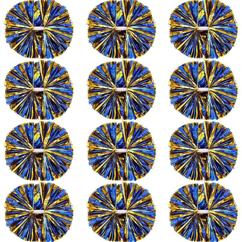 Hoteam 12 Pack Cheerleading Pom Poms Cheer Pompoms with Baton Handle Metallic Foil Pompoms for Adult for Team Sports Party Dance Cheering Squad Accessories, 14 Inch (Blue and Gold)
