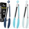 HOTEC Hotec Mini Silicone Kitchen Tongs for Cooking - 7-Inch Small Serving Tongs with Silicone Tips, Set of 3 (Blue)
