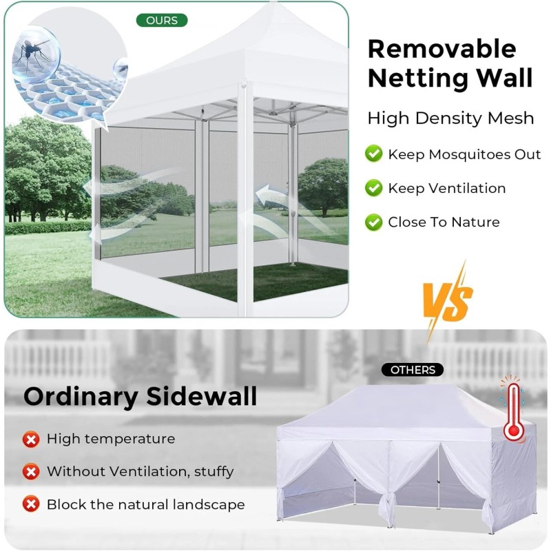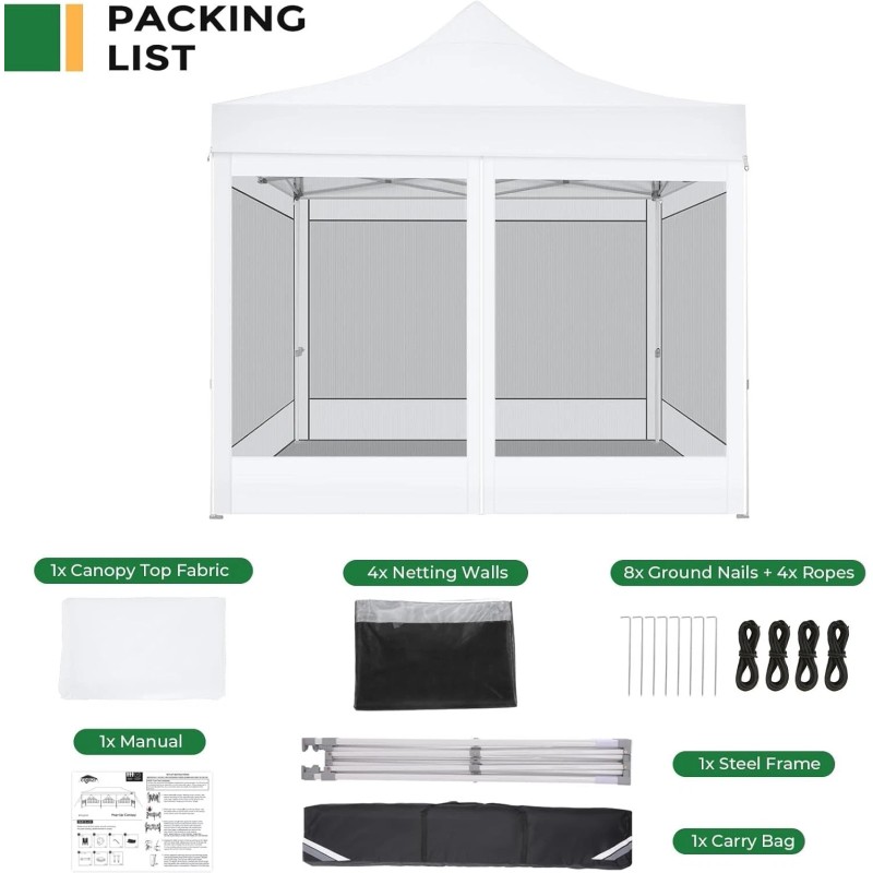 Heavy Duty Canopy 10x10 Pop Up Tent with Net Screen