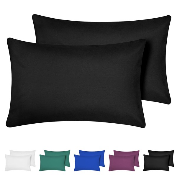 Hotel Quality 100% Cotton Luxury Soft Percale Standard Pillowcases - Set of 2-48cm x 73cm - 300 Thread Count - Breathable (Black)