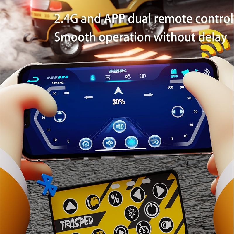Hotfree 1/64 Mini RC Forklift Truck – 11 Channel, 2.4GHz APP & Remote Control, USB-C Rechargeable Alloy Construction, Mini Car Toy, 2-in-1 Fork & Hook, Birthday Gift for Kids & Adults:_Blue with trailer