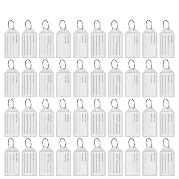 Hotgod 100 Pcs White Plastic Key Tags with Split Ring Label Window Id Luggage Tag Key Ring Keychain