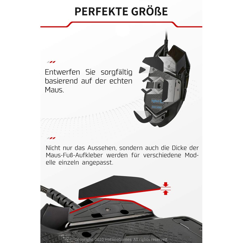 - Specially calibrated thickness – the thickness of 0.6 mm has been specially developed for this mouse model to replace the old mouse feet, provides the ideal foot height and allows smooth and precise operation of your mouse.
