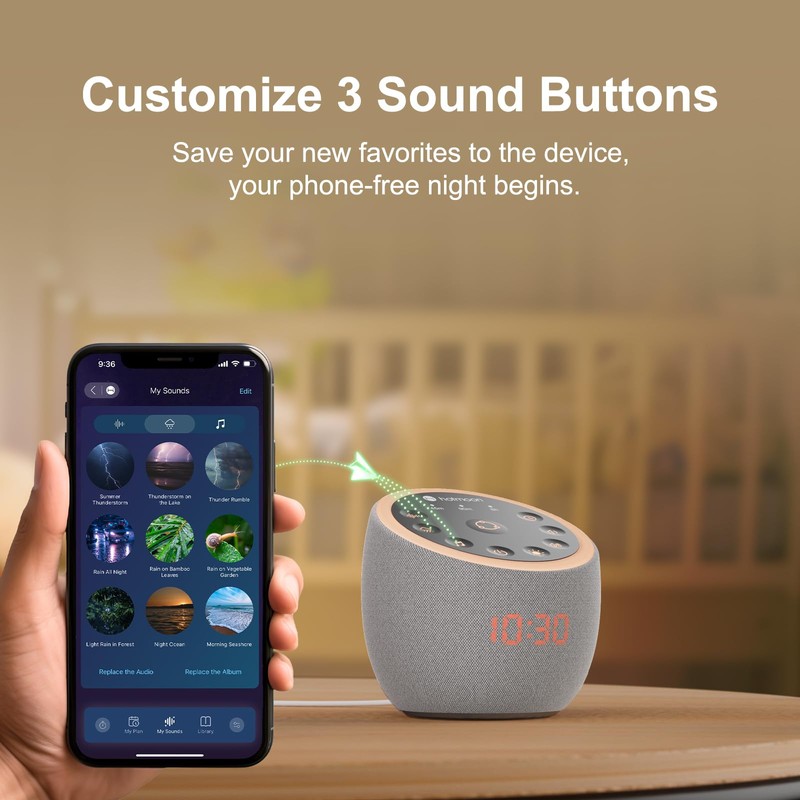 - 【Easy to Use】 Cocoon Pro baby sound machine can be adjusted remotely via companion APP on your phone. Or set your preferences once via our subscription-free companion App, and then let sound machine for sleep run smoothly on its own without needing a phone anymore, just a single button tap to start your soundscape routine