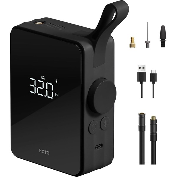 HOTO Air Pump, Multi-purpose, 5 Presets, Automatic Stop, Precision Pressure Adjustment, Prevents Overloading, Automatic Shut-off Function, Cooling Mechanism, 2,500 mAh, Large Capacity, Rapid Type-C