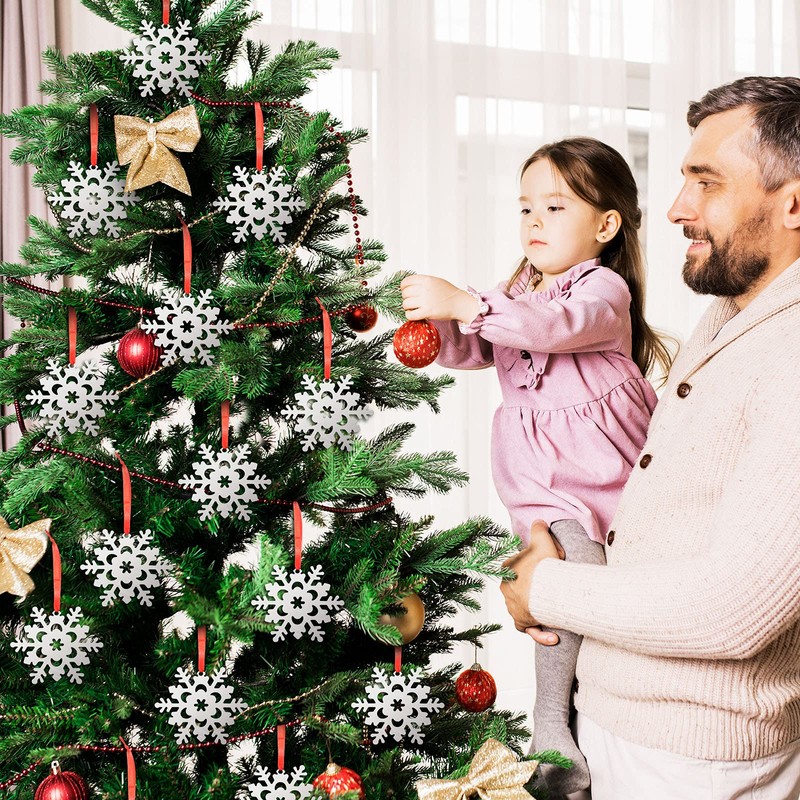 - What You Receive: the package contains 40 pieces of snowflake ornaments and 1 roll of red ribbon, the snowflake sizes about 2.5 inches/ 6.3 cm, red ribbon about 13 feet in length, the adequate quantity can satisfy your creative decoration demands, you can use them to decorate your home and other places