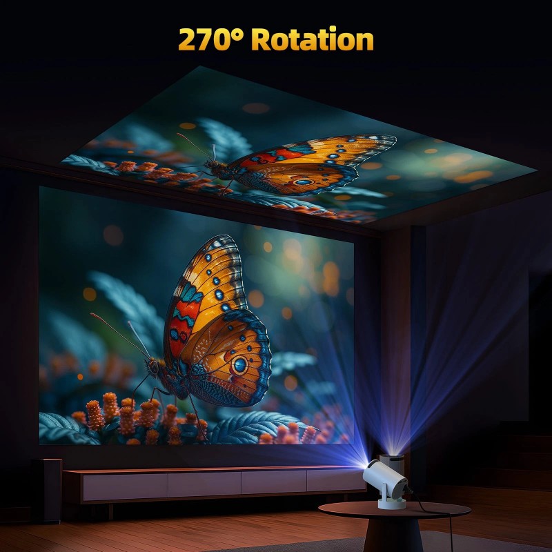 Mini Projector with WiFi 6 and 5.0 Bluetooth, 4K Projector 270° Rotating Movie Projector with Automatic Keystone Correction, Ultra Short Throw Equipped with Android 11.0 Supports Full Format Decoding