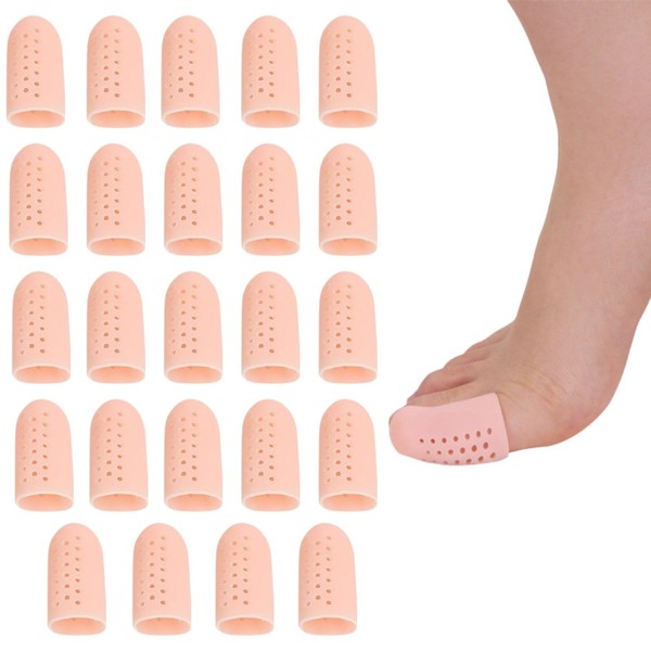 HOTQ 足指サポーター 親指 足指サック 足指保護 指サック足 足爪保護キャップ サポーター 足の親指 (肌色 24個)