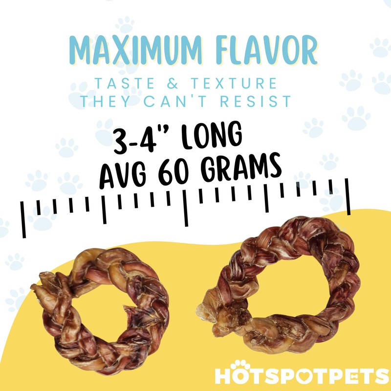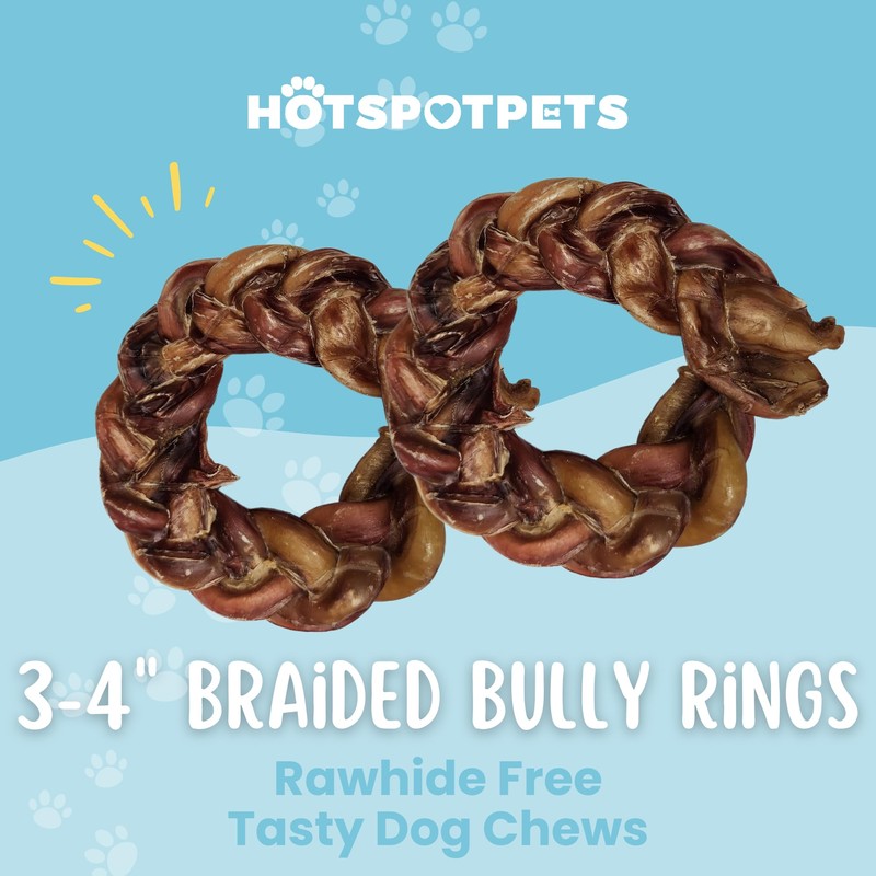 hotspot pets Braided Bully Stick Rings for Dogs - Premium All Natural Long Twisted Beef Pizzle Dog Chew Treats - Grain Free Fully Digestible Rawhide Alternative Bones