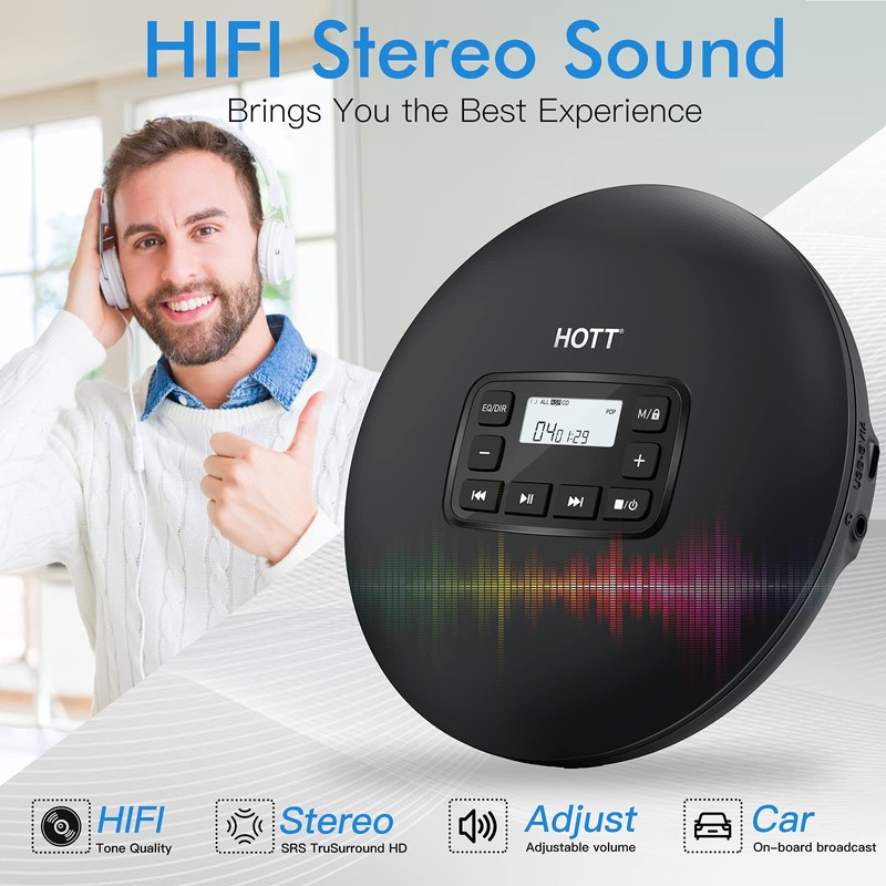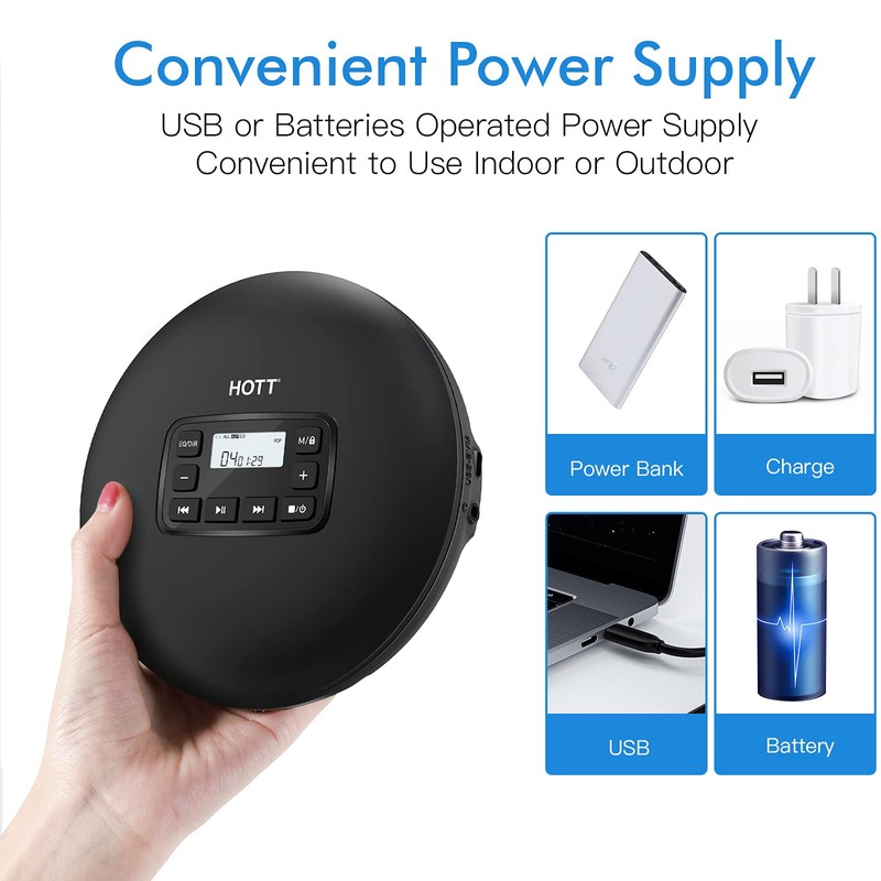 - BACKLIGHT LCD DISPLAY: The HOTT CD204 portable CD player is designed with backlight display, can effectively display the status of the CD player, great for nighttime use.